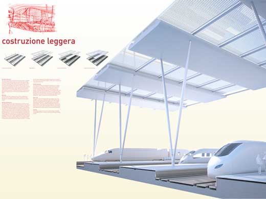 Il progetto propone un' immagine forte per la nuova stazione, che deve diventare una “icona” della città. Percepibile sia dall’esterno sia dal piano dei binari, funziona come punto di riferimento per chi arriva ma anche per chi solo attraversa la città. I fondamenti della forza del progetto sono due. Il telo continuo a strisce che copre lo spazio dell’intero complesso e la diffusa presenza della luce naturale. La luce è trattata come un valore costante, non inscrivibile in uno “stile”. La luce naturale è inoltre un elemento fondamentale per ricucire gli spazi del nuovo complesso edilizio con il contesto in cui è inserito, esponendo entrambi agli stessi cambiamenti atmosferici. Il progetto architettonico assume riconoscibilità come nuovo oggetto legato al contesto e come risposta all’ambizione della città di avere finalmente una nuova e moderna stazione.